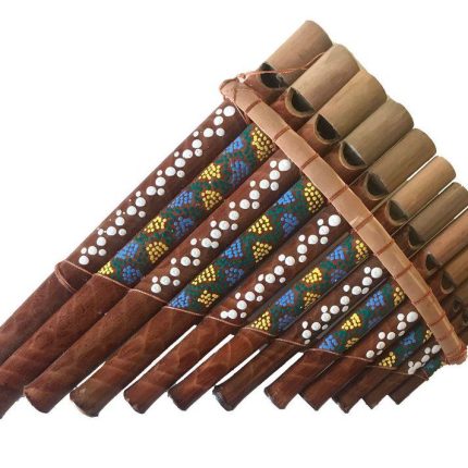 Bamboo Pan Flute Musical Wind Instruments. 12 pipes Sound original bamboo flute. African style painted on shiny bamboo pipes. Made