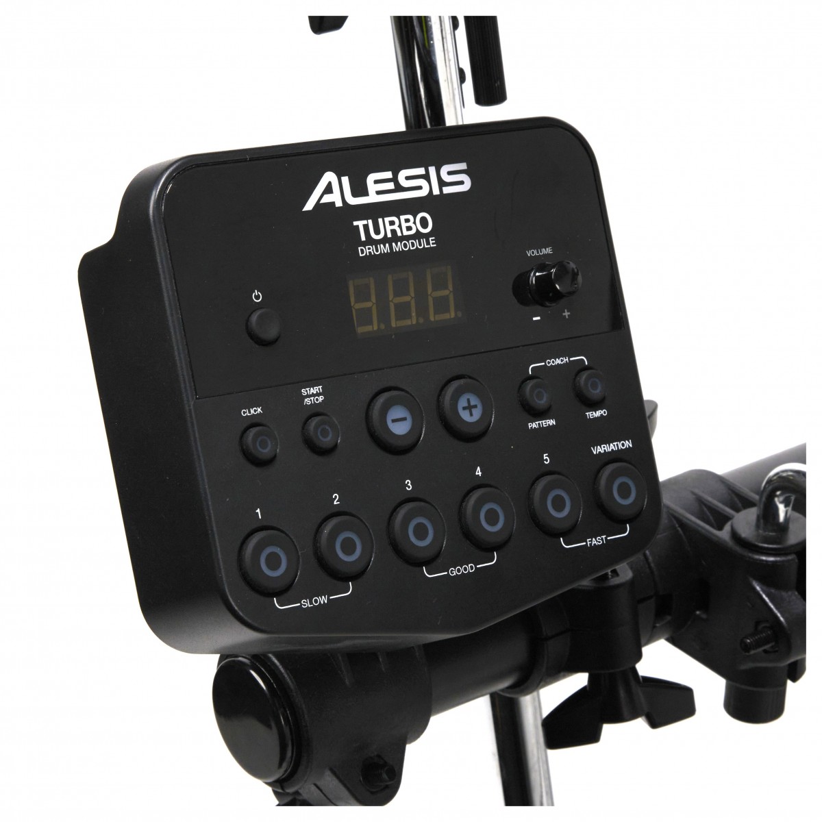 Also included with the Turbo Mesh kit is the Turbo Electronic Drum Module, featuring 10 ready-to-play kit sounds, connection cables, drum sticks, drum key, power supply, and a durable aluminium rack.