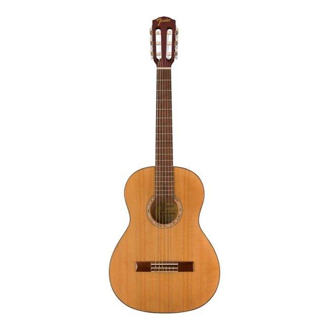 The ¾-size nylon-string FA-15N guitar offers a visually stunning instrument at a budget-friendly price. Quality laminate construction with a modern Fender 3+3 headstock and walnut bridge create an instrument that is not only easy to play, but also sounds great. Beginners and developing players will appreciate the style of this guitar, which features a mahogany neck that gives the guitar a lively tone and feel.